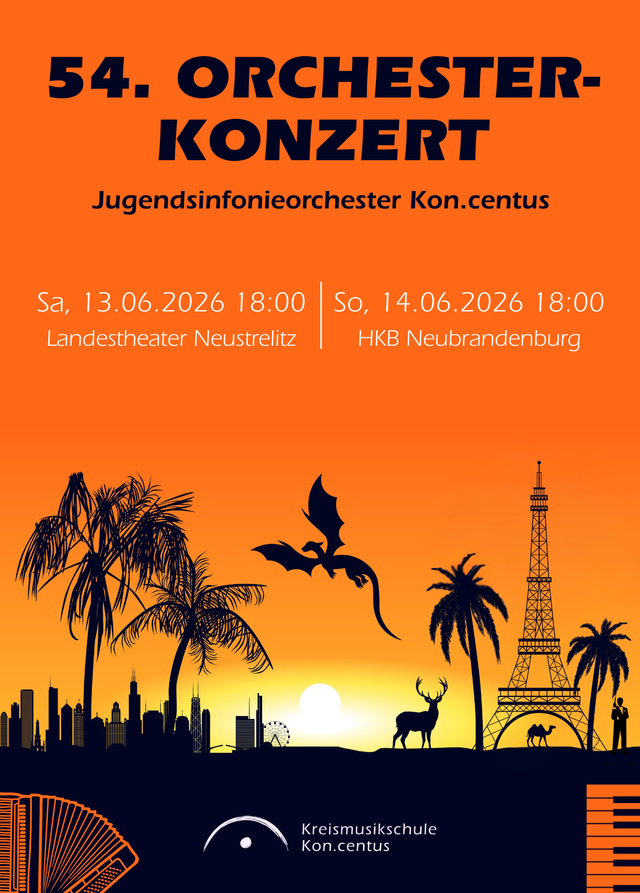 Auch in diesem Jahr präsentiert das Jugendsinfonieorchester der Kreismusikschule Kon.centus wieder sein alljährliches Orchesterkonzert. Dieses Jahr, seit seiner Gründung im Jahre 1971, zum 54. Mal. Die Jugendlichen haben, unter der Leitung von Wolfgang Hasleder, im Laufe des letzten Jahres ein Programm auf die Beine gestellt, das vielfältiger nicht sein könnte.