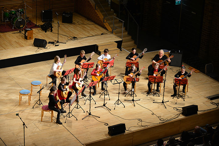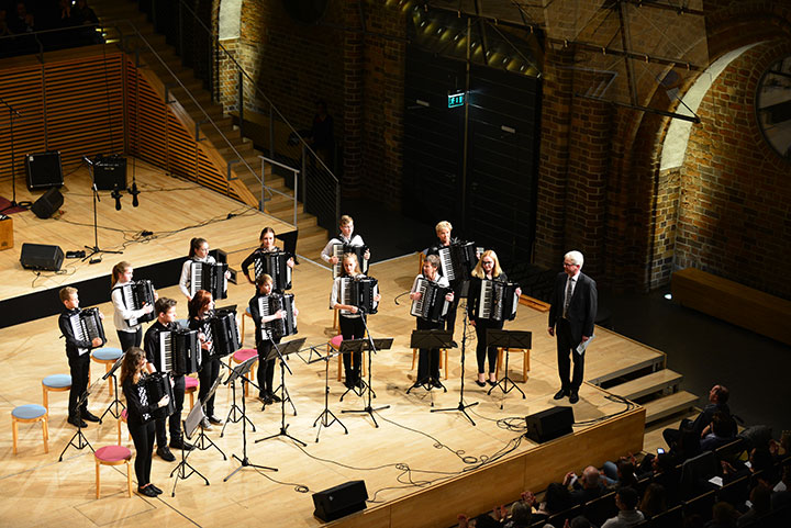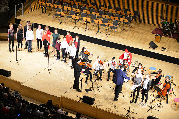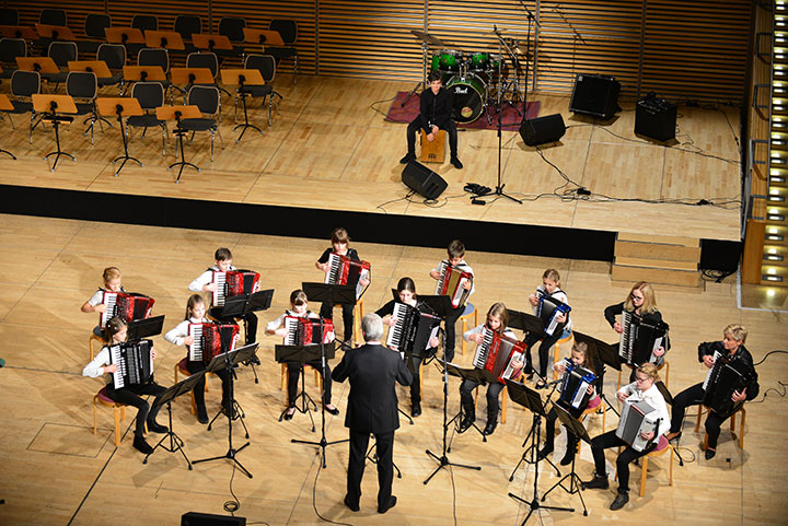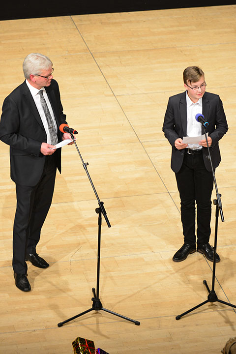 Die instrumentale und vokale Spannbreite reichte von den jüngsten Eleven der Musikalischen Früherziehung, kleinen und großen Solisten, verschiedenen kammermusikalische Besetzungen, der Schulband „Die verrockten Jungs“, bis zu den größeren Ensembles und Orchestern der Sänger, Bläser, Streicher, Gitarristen und Akkordeonisten, sowie als Gast- der Bläserklasse des Lessing-Gymnasiums. Und die Zuhörer in der ausverkauften Konzertkirche erlebten ein äußerst kurzweiliges, interessantes und abwechslungsreiches Programm, in dem besonders das gemeinsame Musizieren, quer durch alle Altersgruppen, wieder im Vordergrund stand. Und alle musikalischen Beiträge wurden mit riesigem Beifall vom Publikum bedacht.