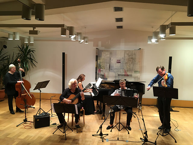 Und das gelang „Castillo del Fuego Nuevo“- mit Sabine Gombert (Gitarre), Marga Hafner-Akazawa (Kontrabass), Konstantina Stankow-Weise (Klavier), Conny Seifert (Akkordeon) und Wolfgang Hasleder (Violine)- mit einem abwechslungsreichen und facettenreichen Programm überaus eindrucksvoll. Mit riesigem Beifall honorierte das Publikum nicht nur die hervorragende kuuml;nstlerische Leistung der Musiker, sondern auch die Tatsache, ein solch anspruchsvolles Konzertprogramm neben dem täglichen Unterrichten in dieser Qualität „fast wie nebenbei“ zu erarbeiten.