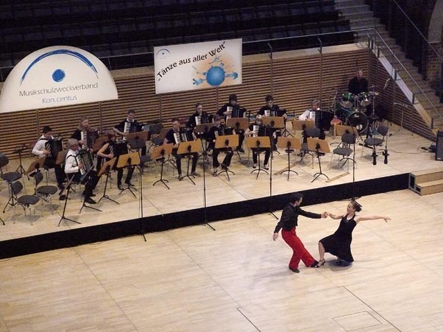 Das dritte große thematische Konzert stand in diesem Jahr unter dem Motto „Tänze aus aller Welt“. Neben handgemachter Musik, gespielt von verschiedenen Ensembles- wie dem Blasorchester, dem Akkordeon -orchester, einem großen Gitarrenensemble, Gesangsformationen, dem Streichorchester Con.cino, einem Querflötenensemble, den Amici Allegris und der Seniorenband - sowie Solisten des Kreismusikschulees Kon.centus – bereicherten Tänzerinnen und Tänzer der Tanzaktion e.V. Neubrandenburg, des Tanzkreises e.V. Neubrandenburg, des Tanzhauses Neustrelitz sowie das Tangotanzpaar Halka und Axel Neufert- Rothe als Gäste dieses Konzert mit Anmut und Grazie.