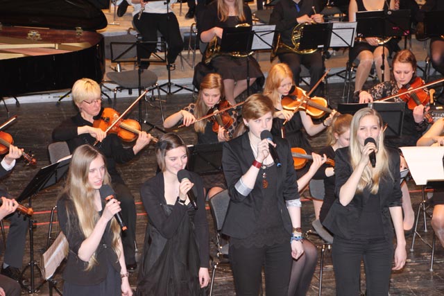 Im 2. Teil wurden Arrangements jüngerer Musik gespielt. Der musikalische Bogen reichte von Filmmusiken aus „Star Wars“ über „Salute to the big Apple“ bis hin zum legendären ABBA- Song „Thank you for the music“ – gemeinsam mit dem Gesangsquartett Maxi Sophie Mäder, Luzia Emilie Linström, Anna-Sophie Kerkau und Ruth-Marie Schilewa.