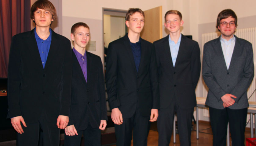 Nach den 16 Delegierungen aus Stralsund erreichten diese auch Julius Tews, Richard Schilewa, Jonathan Aschenbrenner, Florian Aschenbrenner und Florian Werner (Vokalenensemble) am vergangenen Wochenende in Hamburg beim dortigen Landeswettbewerb, da sie in Stralsund krankheitsbedingt nicht antreten konnten.