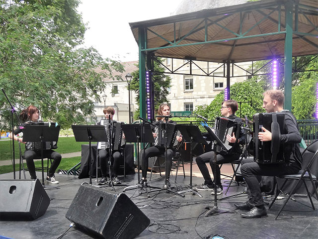 Auf Einladung der Stadt Villejuif reisten die Musikschulband „Verrockte Jungs“ mit Finn Cornel Zoschke, Leon Matthus und Artur Paul, sowie das Akkordeonquintett von Kon.centus mit Dorothea Vigohl, Anne Betker, Cora Kunz, Jonas-Johannes Waack und Steven Mildebrath vom 31. Mai bis zum 04.Juni in die französische Partnerstadt von Neubrandenburg, um beim dortigen traditionellen Stadtfest musikalische Grüße zu überbringen.
