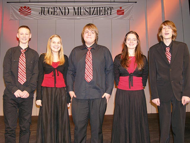 Einen 3. Preis erspielten sich Marie Theresa Sobczinski (Violine), Anna-Sophie Kerkau, Felix Goldmann (Cello), Hanna Kamischke, Friederike Schwarz, Jule Stöcker, Lena Puhlmann, Lizanne Raemisch und Karen Sperling (Duo Klavier / Holzblasinstrument).