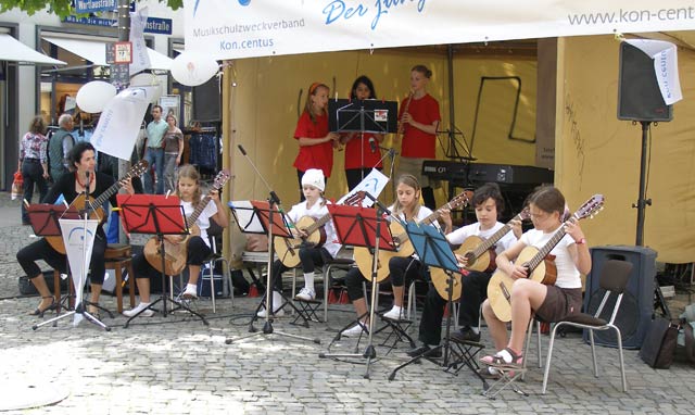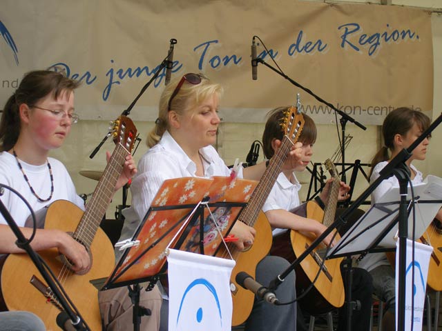 In der Zeit von 10.00 Uhr bis 16.00 Uhr begeisterten auf kleiner und großer Bühne und an mehreren Ständen verschiedene Ensembles wie die Gitarrinis, das Blasorchester, die Jugend Big Band, zwei Akkordeonorchester, Gesangsensembles, Musikschulrockbands, aber auch Pianisten, Bläser, Sänger und natürlich die jüngsten Schüler der Musikalischen Früherziehung luden zahlreiche Passanten, Familien und Besucher Neubrandenburgs zum Verweilen ein und verbreiteten bei Straßenmusik künstlerisches Flair.
