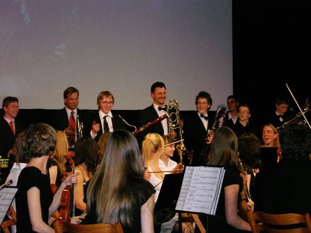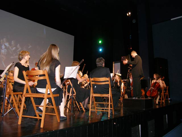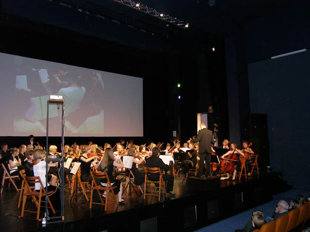 Dort gelang das anspruchsvolle Konzertprogramm mit Werken u.a. von Händel, Schubert, Chopin, aber auch mit schwungvollen Film- und Musicalmelodien noch einmal zur Aufführung. Orchester und Solisten aus beiden Ländern begeisterten die Zuhörer. Wenn auch nicht mit 100 jungen Musikern auf großer Bühne, wie beim Konzert in Neubrandenburg, so verbreitete das gemeinsame deutsch- polnische Jugendorchester auch für das Publikum im Kinosaal von Szczecinek die gleiche Faszination und erfüllte den kulturellen Jugendaustausch mit neuem Leben.