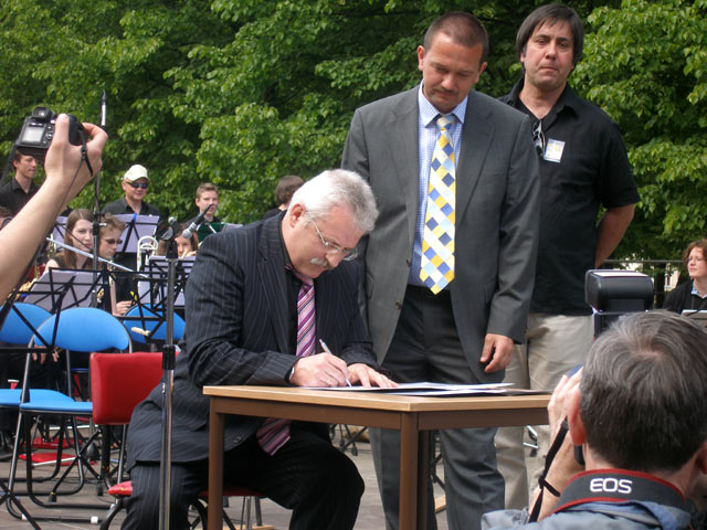 Während des Picknickkonzerts wurde ein Patenschaftsvertrag vom Leiter des Kreismusikschulees Kon.centus Olaf Kerkau und dem Leiter der Musikschule in Szczecinek Wlodzimierz Piesiak unterzeichnet.