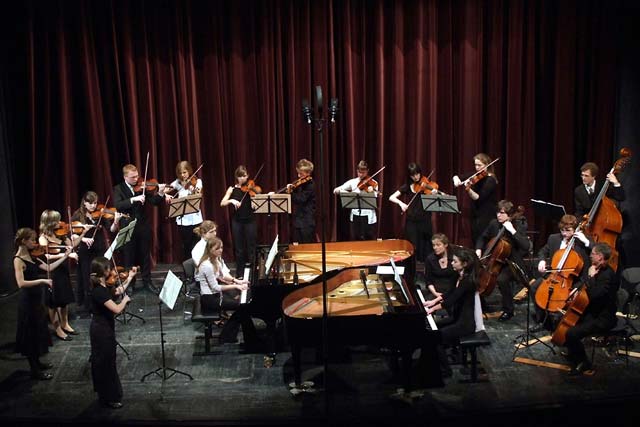 Das abwechslungsreiche Programm reichte vom Konzert für zwei Klaviere, Streicher und Basso Continuo von J.S. Bach, über „An der schönen blauen Donau“ von Johann Strauß, einer Gospelsuite von John Mortimer, einer Romance für Altsaxophon und Orchester bis hin zu Musical- und Filmmusiken aus „Chicago“ und „Mission Impossible“.