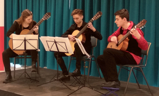 Unser Gitarrentrio mit Annelie Weckwert, Marc Weckwert und Louis Schenk wurde für ihr wieder hervorragendes Musizieren mit einem 1. Preis geehrt. 2. Preise erspielten und ersangen sich mit gleichfalls tollen musikalischen Präsentationen Anna Betker (Akkordeon), Clara- Marie Schade und Sannah Raemisch (Vokalensemble) und Florence Naemi Irmer (Viola). Über 3. Preise freuten sich Sophia Rau (Violine) und das Gitarrentrio Anna Zeisler, Jerome Kastner und Gabriel Hauser für ihre eindrucksvollen Wettbewerbsdarbietungen und auch hinter dem Prädikat „sehr gut“, das Auguste, Erasmus und Wilhelmine Koch (Klavier- Kammermusik), Mette Marit Maschke (Violine), Egon Buchner (Violoncello), Elisa Fuhrmann (Akkordeon), Solveig Schmid und Clara Kamischke (Duo Trompete- Klavier) sowie Felizia Darsow und Marie Luise Langer ( Duo Querflöte- Klavier) zuerkannt wurde, stecken tolle musikalische Leistungen unserer Musikschüler.