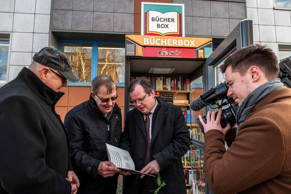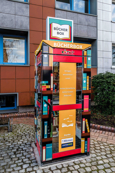 Eine alte, umgebaute Telefonzelle mit Spielen, Kinderbüchern, CD und DVD sowie verschiedensten Büchern kann nun durch große und kleine interessierte Leserinnen und Leser jederzeit genutzt werden. Unter dem Motto „Bringen- Nehmen- Lesen“ wurde somit die zweite „Öffentliche BÜCHER-BOX“ in dieser Art für die Nutzung freigegeben, was dem Anliegen der Bürgerstiftung, Bildung durch Lesen zu fördern, Rechnung trägt.