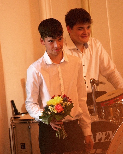 Dabei erklangen Werke u.a. von Benjamin Britten, Ennio Morricone, Francior Born, Pjotr .I. Tschaikowski , ein ABBA- Medley und als Zugabe das legendäre „Erinnerung an Zirkus Renz“ von Gustav Peter. Standing Ovationen für die Solisten Inken Böttcher (Oboe), Klara Harder (Querflöte) und Emil Koch (Xylophon), riesiger Beifall für alle MusikerInnen und rote Rosen für all jene, die das Orchester leider verlassen werden, waren der Schlusspunkt hinter einen wieder sehr gelungenen Konzertabend.
