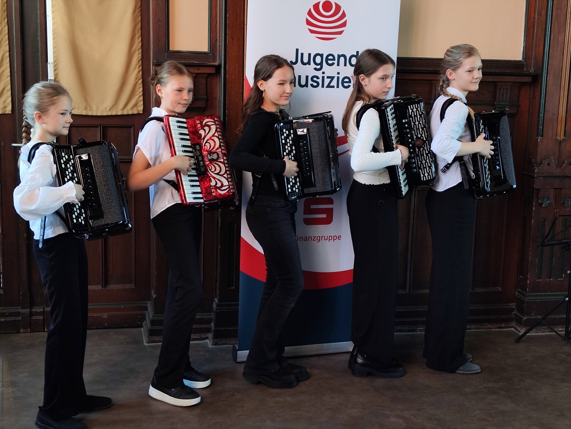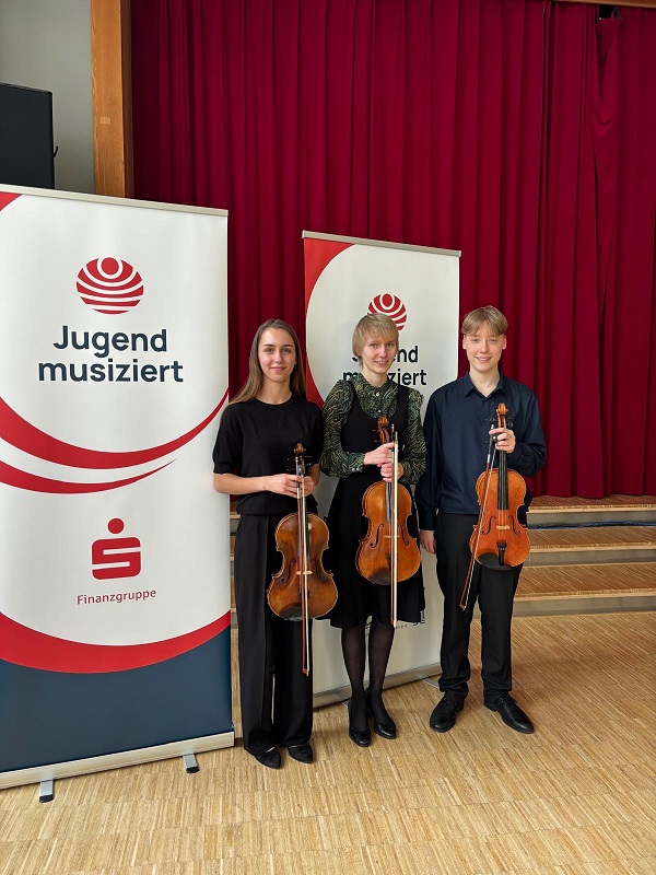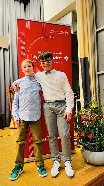 Und auch in der Altersgruppe 2 erspielten sich Yuuma Schulz, Leonard von der Groeben (Violine), Alwine Meier (Akkordeon), und Ansgar Schober und Josua von Eicken (Duo Klarinette/ Klavier) die erforderliche Punktzahl. Sie dürfen allerdings auf Grund der Altersbegrenzung noch nicht zum Bundeswettbewerb nominiert werden.