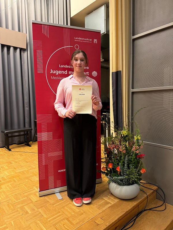 Am vergangenen Wochenende fand der diesjährige Landeswettbewerb „Jugend musiziert“ in Schwerin statt. Ca. 160 junge Musiktalente hatten sich in den verschiedenen Regionalwettbewerben die Delegierung zum Landesausscheid erspielt, um in 120 Wertungsspielen in den Solokategorien Violine, Viola, Violoncello, Gesang Pop, Akkordeon und den Duowertungen Gitarren-Ensemble, Vokal- Ensemble, Duo Klavier und ein Holz- bzw. Blechblasinstrument in den musikalischen Wettstreit zu treten.
