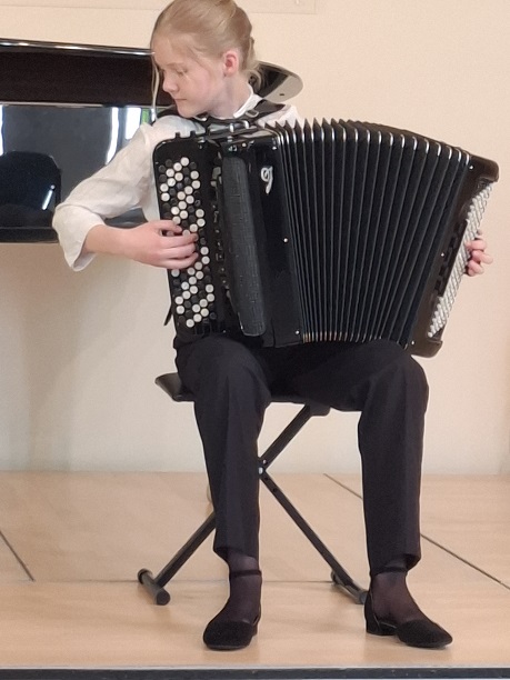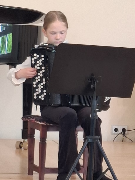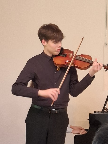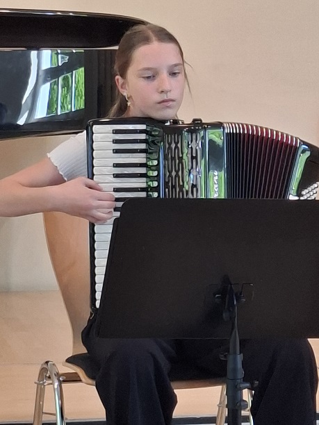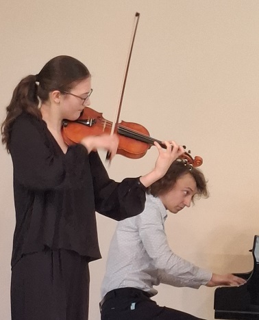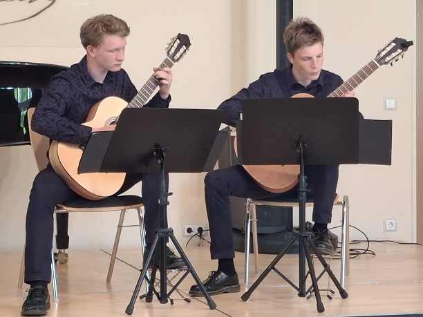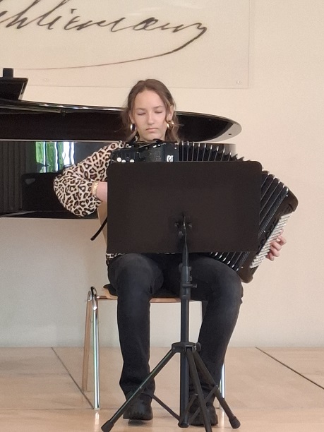 Die jungen KünstlerInnen musizierten ganz frei Ausschnitte aus ihren anspruchsvollen Wettbewerbsprogrammen, ohne das es diesmal um Punkte und Platzierungen ging. Mit großes Spielfreude und künstlerischer Meisterschaft erfreuten Yuuma Schulz, Leonard von der Groeben, Johannes Mehlhorn und Mette Marit Maschke (Violine), Paula Beier, Karla Opp, Alwine und Liesbeth Meier (Akkordeon), Florentine Weimann (Violoncello), Jakob Maximilian Rau (Viola), Gustav Melinkat und Felix Neubert (Gitarrenduo), Ilinca Tsiple (Gesang Pop), sowie Josua von Eicken und Ansgar Schober Duo Klavier- Klarinette) dann auch das Publikum, das den jungen Musikanten mit großem Beifall dankte, der natürlich auch die Korrepetitoren Sebastian Godzinski und Henning von der Groeben für ihre einfühlsamen Klavierbegleitungen mit einschloss.