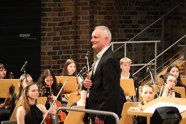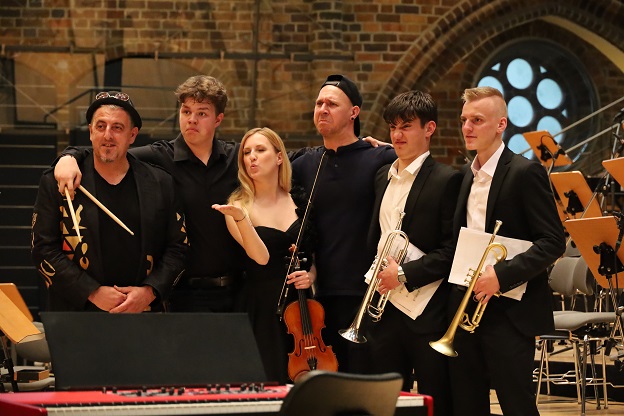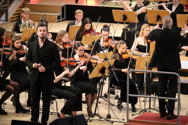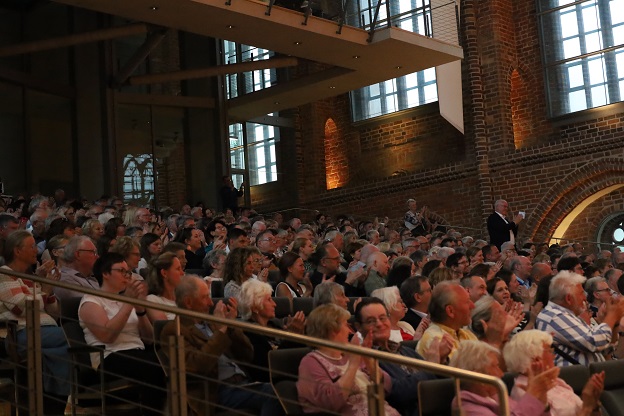 Einfühlsam begleitet vom großen Gemeinschaftsorchester mit Musikschülern aus beiden Ländern- unter Leitung von Tomek Gilka- traten außerdem herausragende 5 junge polnische GesangssolistInnen auf, die in renommierten Musiktheatern Polens engagiert sind. Und alle begeisterten das Publikum von 8- 80 Jahren mit ihren mitreißenden Darbietungen.
