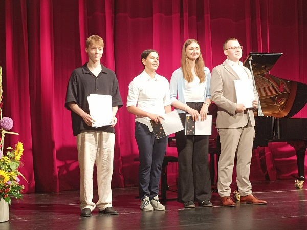 Am Sonnabend, den 5. Juli erhielten unsere ersten LandespreisträgerInnen und unsere BundespreisträgerInnen beim „Landespreisträgerkonzert Jugend musiziert 2025“ des Landesmusikrates MV im Landestheater Neustrelitz nochmal eine besondere Ehrung für die tollen Leistungen beim wohl bedeutendsten Wettbewerb für kulturelle Jugendbildung in Deutschland,