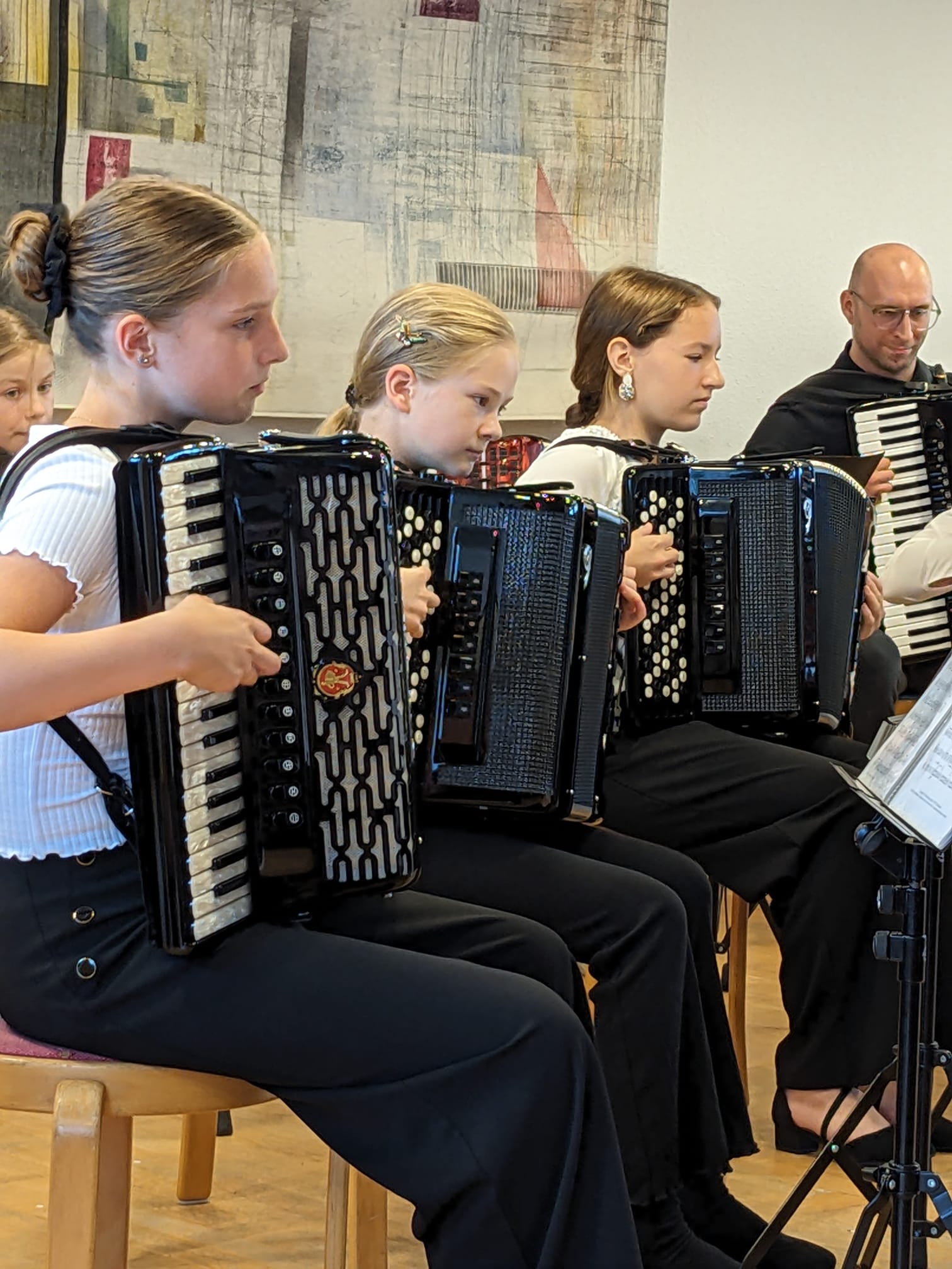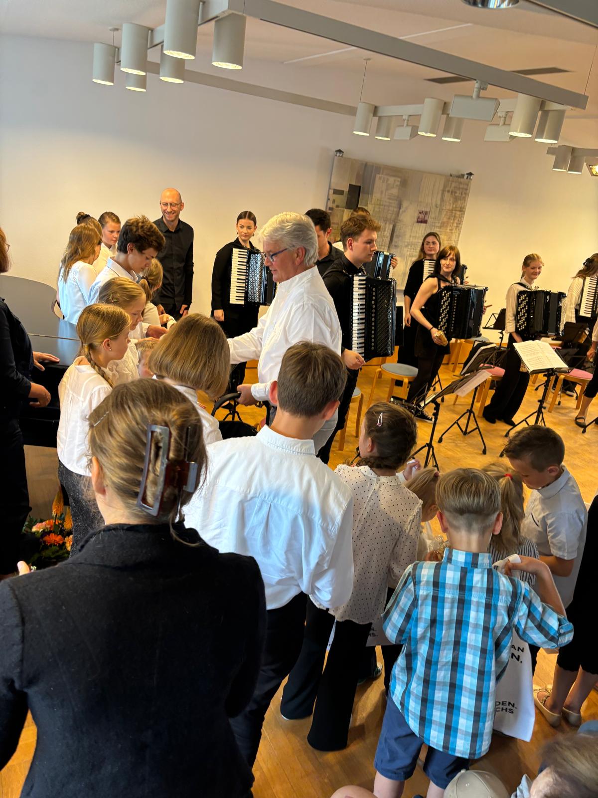 Vom kleinsten Solisten, dem 5-jährigen Alois bis zu Preisträgern von „Jugend musiziert“, vom Nachwuchsorchester bis zum großen Akkordeonensemble, vom Kinderlied, über Werke von J.S. Bach oder D. Scarlatti bis zu Klezmer, Tango, Swing und auch Stücken der zeitgenössischen Akkordeonmusik reichte dabei die musikalische Spannbreite. Danke an alle Beteiligten für dieses schöne Konzert!