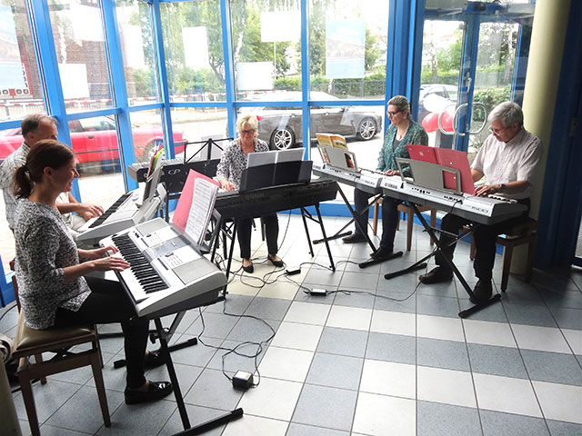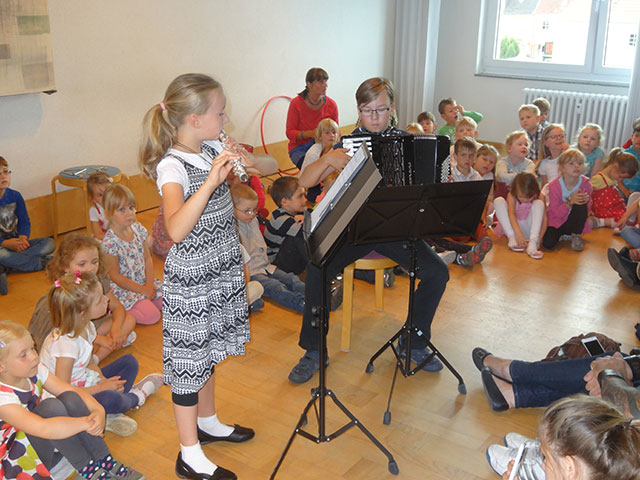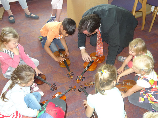 Und die Musikschullehrer und Mitarbeiterinnen der Verwaltung kamen kaum zum Luftholen, wenn es darum ging, Hilfestellung beim Entlocken der erste Töne zu geben und die Fragen- rund um die Musikschulausbildung- der vielen Besucher zu beantworten.