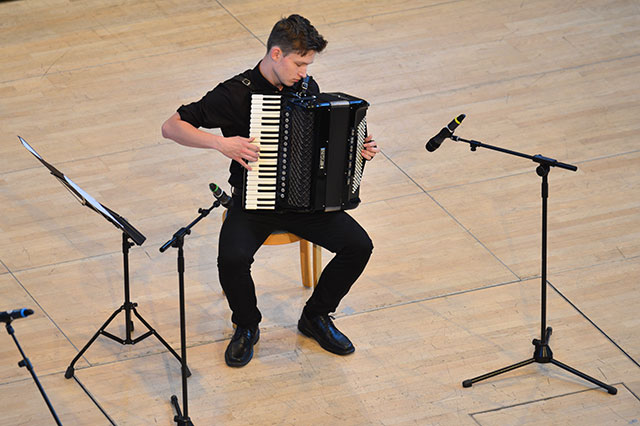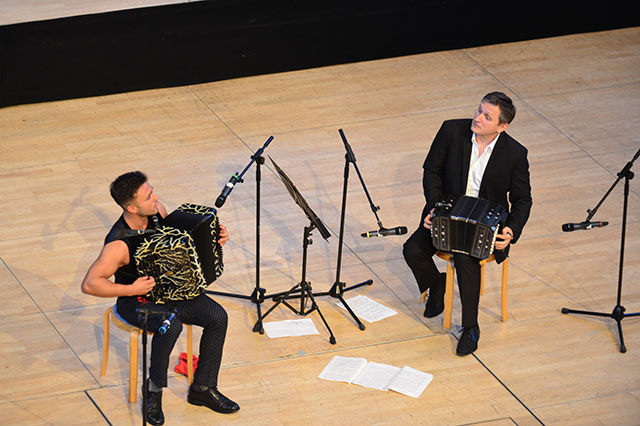 Xu Xiaonan - Beststudent der Musikhochschule in Peking und Preisträger fast aller großen internationalen Akkordeonwettbewerbe - verzauberte mit vier unglaublich einfühlsam und exzellent gespielten Werken das Publikum und auch das Duo “Tango Reaction“ aus Serbien- mit Prof. Alexandar Nikolic` (Bandoneon) und seinem ehemaligen Studenten Petar Maric` (Akkordeon), accordion world champion für klassisches, virtuoses und elektronisches Akkordeonspiel, gaben mit ihren brillianten und sehr unterhaltenden Darbietungen dem Konzert eine besondere Note.
