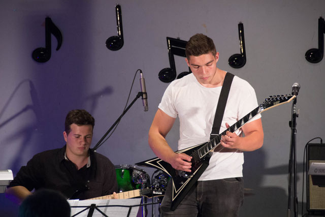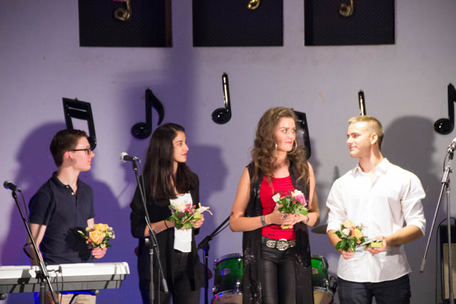 Besonderen Beifall erhielten dabei der 9-jährige Gitarrist und Sänger Finn mit seinem Titel „Ein Hoch auf uns“, aber auch Emily, Julian, Franziska und Ferry, die an diesem Abend mit vielen Emotionen verabschiedet wurden. Und am Schluss heizte die Lehrerband dem Publikum mit den Titeln „Rosanna“ und „Ich war noch niemals in New York“ noch einmal so richtig ein.