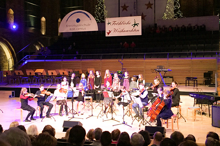 Zum traditionellen großen „Weihnachtlichen Konzert“ am 17. Dezember begeisterten ca. 200 Musikschüler und ihre Lehrer der Kreismusikschule Kon.centus das Publikum in der ausverkauften Neubrandenburger Konzertkirche und setzten einen würdigen Schlusspunkt hinter ein wieder sehr erfolgreiches Musikschuljahr.