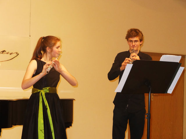 Im anschließenden „Ersten Entdeckungskonzert“ erklang wundervolle Musik von B. Campagnoli, der Neustrelitzer Musikschülerin Theresa Hetzel, die vom Lions Club mit einem Stipendium für ihre berufsvorbereitende Ausbildung geehrt wurde, F.A. Hoffmeister, A. Ginastera, E. Bozza und Cl. Debussy- meisterhaft vorgetragen von Suleika Bauer (Violine), Rico Gatzke (Klavier), den ersten Bundespreisträgern „Jugend musiziert“ 2014 Charlotte Kuffer (Flöte) und Max Vogler (Oboe) sowie Hannah Kamischke (Klavier).