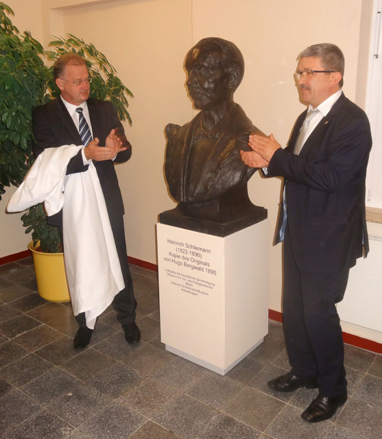 Neben der feierlichen Enthüllung einer Büste von Heinrich Schliemann- als ständige Leihgabe des Heinrich-Schliemann Museums Ankershagen- einem sehr gelungenem Vortrag von Dr. Reinhard Witte über das Wirken Heinrich Schliemanns, untermalt von musikalischen Beiträgen durch Aisha Hetzel, Rico Gatzke (Klavier) sowie Suleika Bauer (Violine), gab Schulleiter Olaf Kerkau einen Rückblick über „10 Jahre Kon.centus“ und eröffnete eine kleine Bilderausstellung, die Streiflichter der erfolgreichen musikalischen Arbeit der Musikschüler und -lehrer in der vergangenen Zeit dokumentiert .